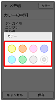 を設定すると、メモ帳一覧画面で、対象のメモの背景が設定したカラーの色で表示されます。