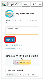 My Y!mobileの登録をすでに行っている場合は、電話番号とMy Y!mobileのパスワードを入力すると、My SoftBankにログインできます。