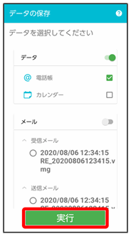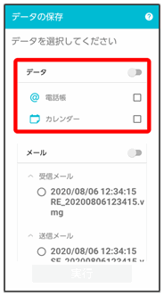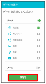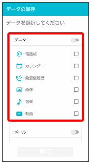 電話帳、カレンダー、発着信履歴、画像、音楽、動画のデータが保存できます。