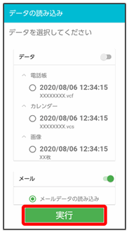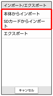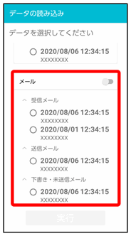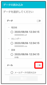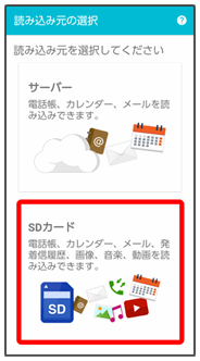 サーバー/SDカードに保存したメールを、本体に読み込むことができます。
