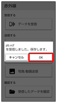 連絡先などを受信した場合は、登録確認画面が表示されます。