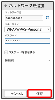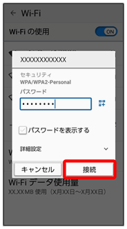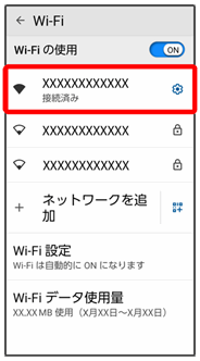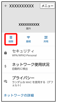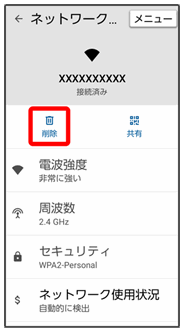 接続状況、電波強度、周波数、セキュリティなどが表示されます。