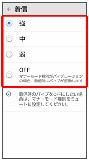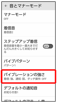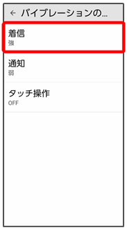 着信時のバイブレーションの強さや、バイブレーションを動作させるかどうかを設定します。