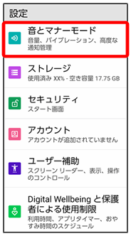 | 着信・通知音の音量 | 電話の着信音などの音量を設定します。 | |