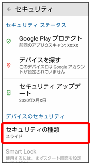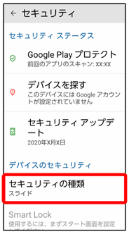 | Google Play プロテクト | 本機をスキャンしてセキュリティに問題がないかを確認するかどうかを設定します。 | |