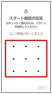 スタート画面のセキュリティや、USIMカードロックなどに関する設定ができます。