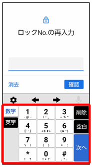 | ロックNo. | スタート画面のセキュリティを解除するための暗証番号です。 詳しくは、「ロックNo.でスタート画面のセキュリティを解除するように設定する」を参照してください。 |