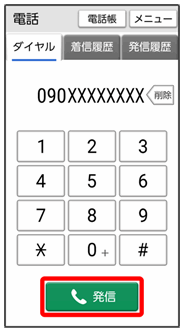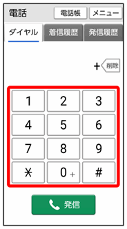 • ↓ダイヤルキーをタップして相手の電話番号を入力