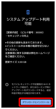 システムアップデート画面が表示されます。