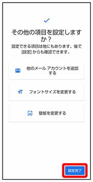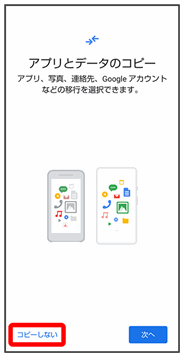 はじめて本機の電源を入れたときは、初期設定画面が表示され、Wi-FiやGoogle™ アカウントなどの設定を行うことができます。画面に従って、各項目を設定してください。