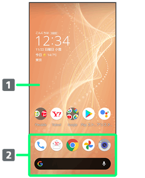 ホーム画面シートが複数あるときは、ホーム画面を左右にフリック/スワイプすると、ホーム画面シートを切り替えることができます。