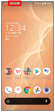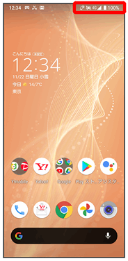 画面上部には、新着メールなどをお知らせする通知アイコンや、本機の状態を示すステータスアイコンが表示されます。