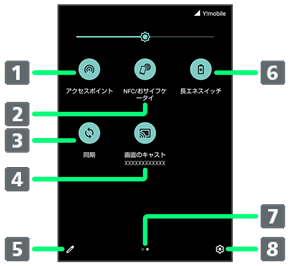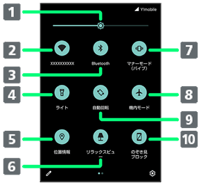 クイック設定パネルでは、アイコンをタップして機能のON/OFFなどを設定できます。
