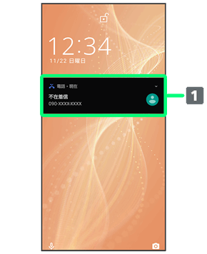 着信中に電話を受けられなかったときは、ロック画面に通知が表示されます。