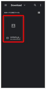 本機やほかの携帯電話でSDカードに保存(バックアップ)した電話帳データを読み込み(インポート)できます。