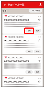 • ↓新着メール一覧画面で削除する新着メールの削除