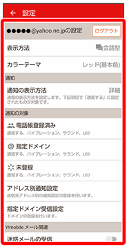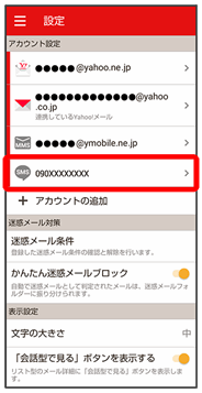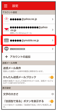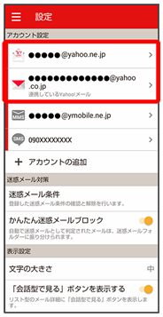 | アカウントの別表示 | Y!mobile メールと連携しているYahoo!メールを個別に表示させるかどうかを設定します。 |