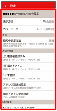 | 指定ドメイン | 指定ドメインに登録した相手からメールを受信したときの通知方法を設定します。 | |