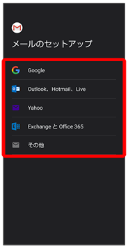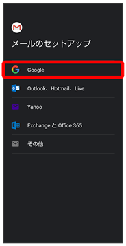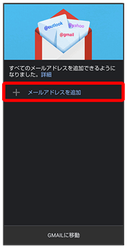 (Gmail)を起動すると、アカウント設定画面が表示され、設定操作を行うことができます。