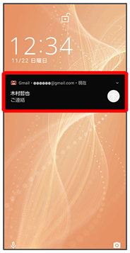 新着メールを受信すると、ロック画面に新着メッセージ通知が表示されます。