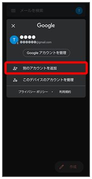 ここでは、Googleのメールアカウント追加を例に説明します。