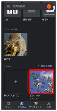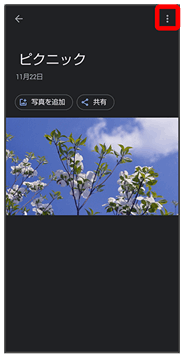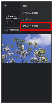 本機のカメラで撮ったり、ダウンロードしたりした写真や動画をアルバムで管理することができます。また、メールやBluetooth®を使用して、ほかの端末やコンピュータへ写真/動画を送ることもできます。