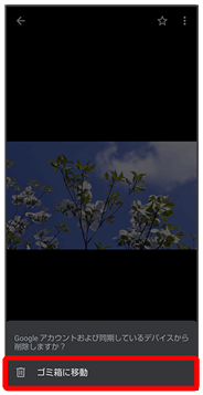 ゴミ箱と操作すると、移動した写真や動画を確認できます。