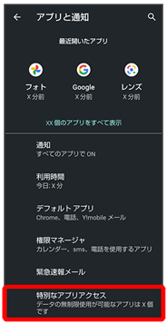 アプリをはじめて起動したときは、動作について設定が必要になります。アプリによって、表示される確認画面の種類や内容は異なります。ここでは、「アプリに必要な許可」「電池の最適化」の2種類の確認画面について説明します。