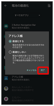 電池の最適化を行うと、画面消灯中(充電中を除く)はアプリが動作しないように設定されます。