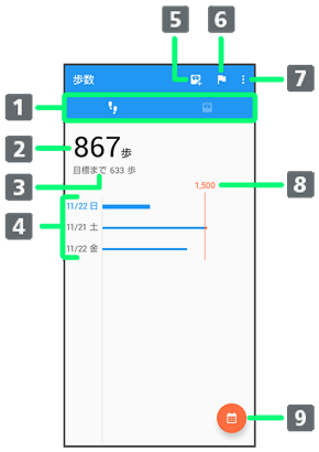 • ↓歩数計ONaquos-sense4-basic_icon_141表示)