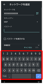表示されたQRコードを他の機器で読み取ることにより、パスワードが共有されます。