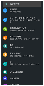 | アプリと通知 | アプリや通知に関する設定ができます。 | |