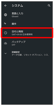 | 言語と入力 | 表示言語や文字入力に関する機能を設定できます。 Gboardの設定について詳しくは、「Gboardの設定を行う」を参照してください。 S-Shoinの設定について詳しくは、「S-Shoinの設定を行う」を参照してください。 |