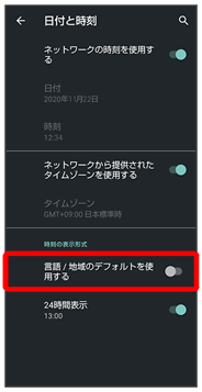 ユーザーの言語/地域の標準に従って24時間表示/12時間表示が自動設定されます。