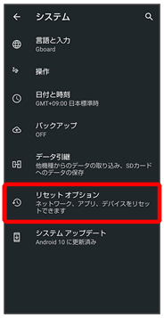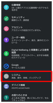 言語と入力や日付と時刻、バックアップ、リセットなどに関する機能を設定できます。