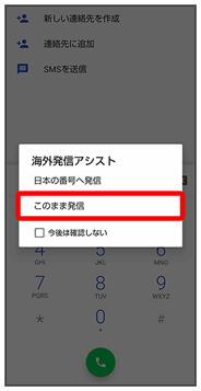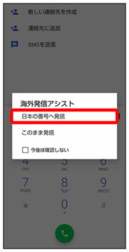 本機には、海外発信アシスト機能が搭載されています。海外から電話をかけるときに、発信方法を選択することができます。