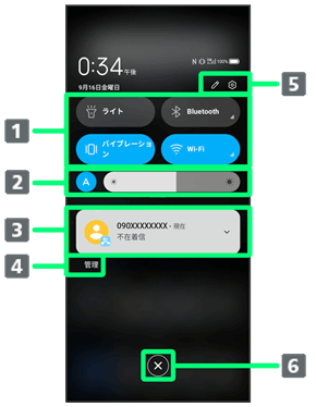 クイック設定パネルの編集や端末設定メニューの表示ができます。