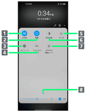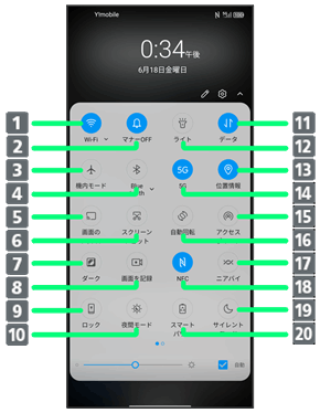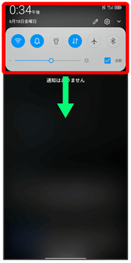 通知パネルを下にフリック/スワイプすると、クイック設定パネルを開くことができます。クイック設定パネルでは、アイコンをタップして機能のON/OFFなどを設定できます。