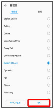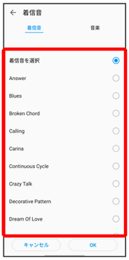 • ダウンロードした着信音などを設定するときは、音楽をタップして画面に従って操作してください。