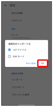 SDカードに保存(バックアップ)した電話帳データを読み込み(インポート)できます。