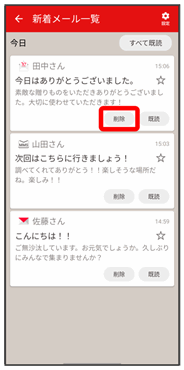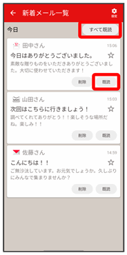 既読をタップすると対象の1通が既読に、すべて既読をタップすると1日分が既読になります。