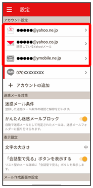 • ↓設定したいメールアカウントをタップ