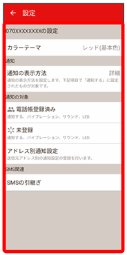 電話帳登録済み 電話帳に登録済みの相手からメールを受信したときの通知方法を設定します。