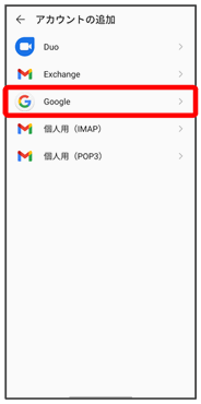 ここではGoogleのメールアカウント追加を例に説明しています。