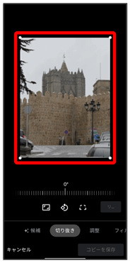 切り出す枠をピンチイン/ピンチアウト/ドラッグして、サイズ/位置を調節