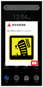 緊急速報メッセージの画面を閉じます。