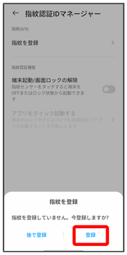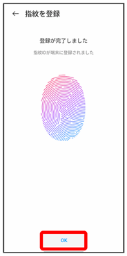 • 続けて別の指紋を登録する場合は、指紋を登録をタップします。