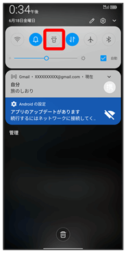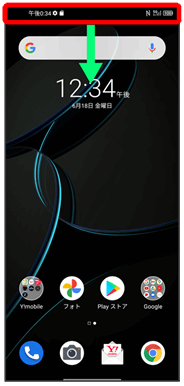 ステータスバーを下にフリック/スワイプ