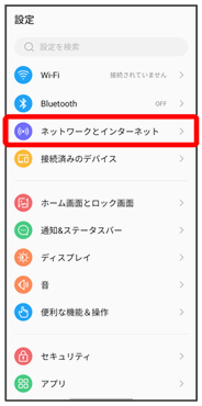 海外での通信 海外でのご利用の際に、通信しないよう設定します。詳しくは、「データローミングの設定を変更する」を参照してください。