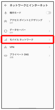 • モバイルデータをタップするたびに、ON(libero-5g_icon_401)/OFF(libero-5g_icon_400)が切り替わります。